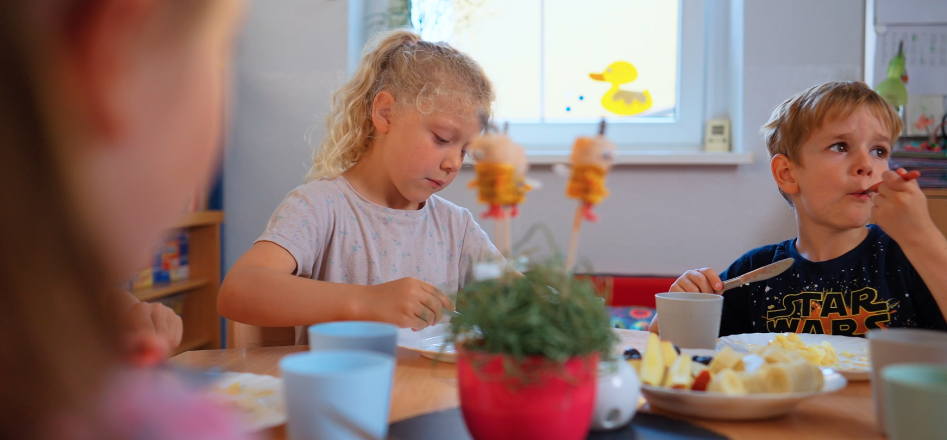 Eine gesunde Ernährung in einer angenehmen Atmosphäre ist für die Entwicklung von Kindern aller Altersstufen von großer Bedeutung. Verpflegung bedeutet für uns mehr als nur Essen und Trinken: Sie ist Teil eines gesundheitsfördernden Lebensstils, der sowohl von Ihnen als Eltern als auch von uns in der Kita mitgestaltet wird.