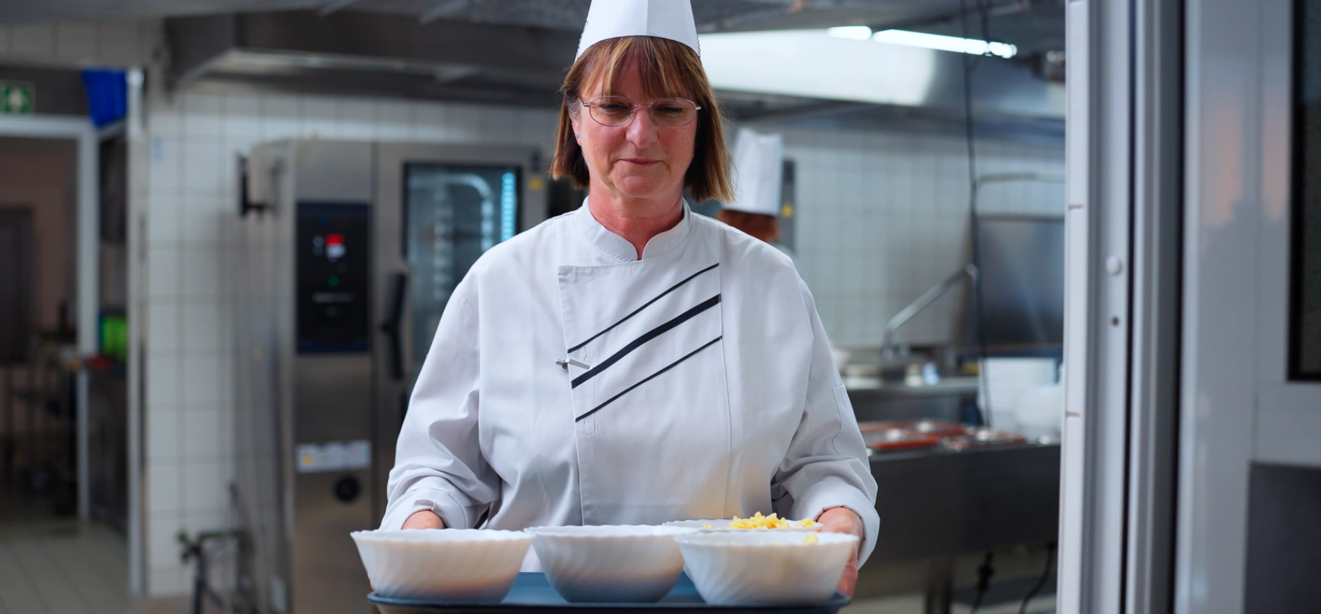 Die Gestaltung unserer Speisepläne orientiert sich an den Empfehlungen der DGE. Um den damit verbundenen Qualitätsanspruch zuverlässig umzusetzen, haben wir die Küchenarbeit in eigene Verantwortung übernommen. So stehen uns kreative Köchinnen, Köche und Küchenhelfer zur Seite, die eng mit uns zusammenarbeiten, flexibel auf Wünsche reagieren, gesund und vielseitig kochen und die Mahlzeiten für die Kinder ansprechend anrichten. Dabei berücksichtigen wir selbstverständlich auch individuelle Ernährungsbedarfe, wie z. B. Allergien oder Unverträglichkeiten.